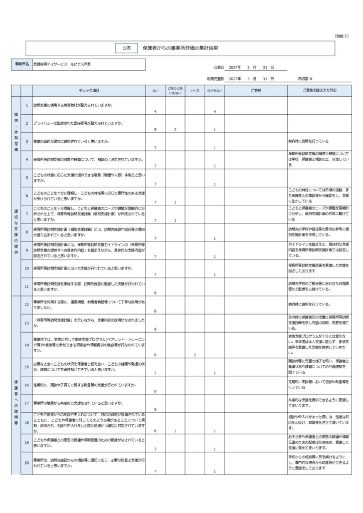 ルピナス戸室 2025年度 保護者等からの事業所評価(保育所等訪問)の集計結果 公表
