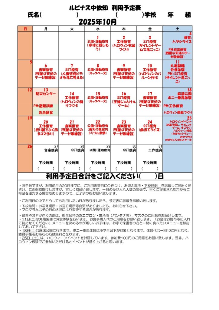 10月の予定