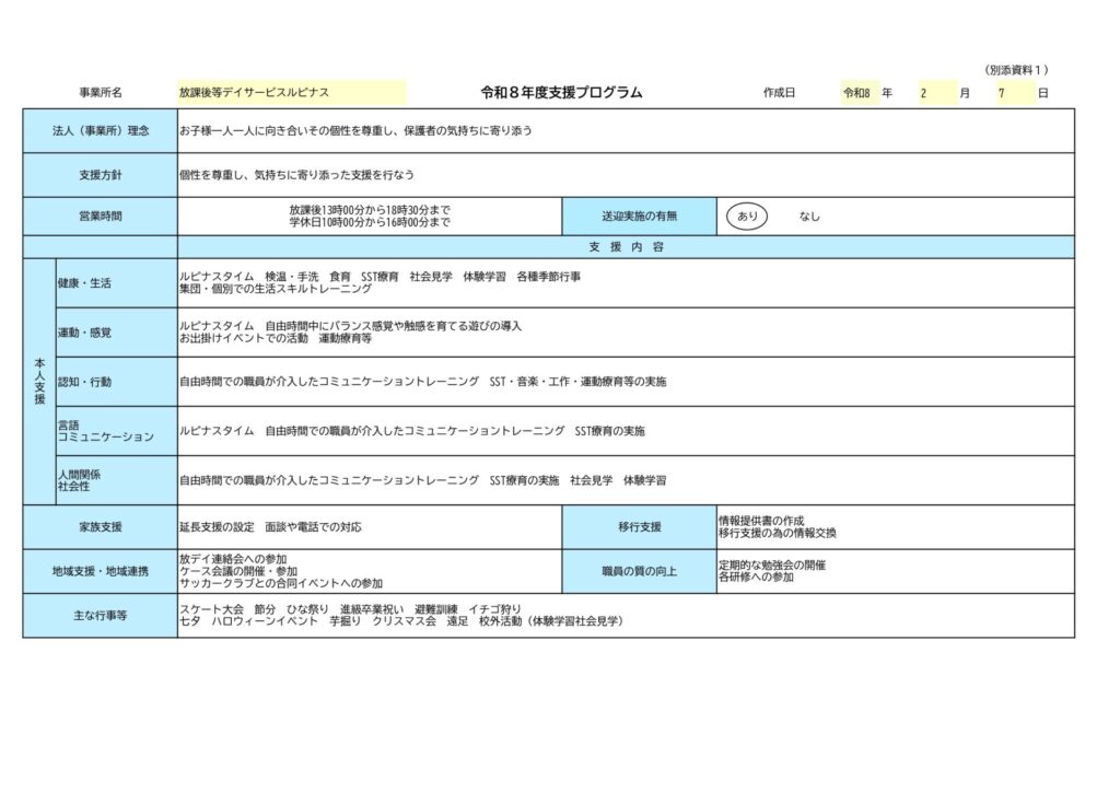ルピナス中依知 2026年度 支援プログラム